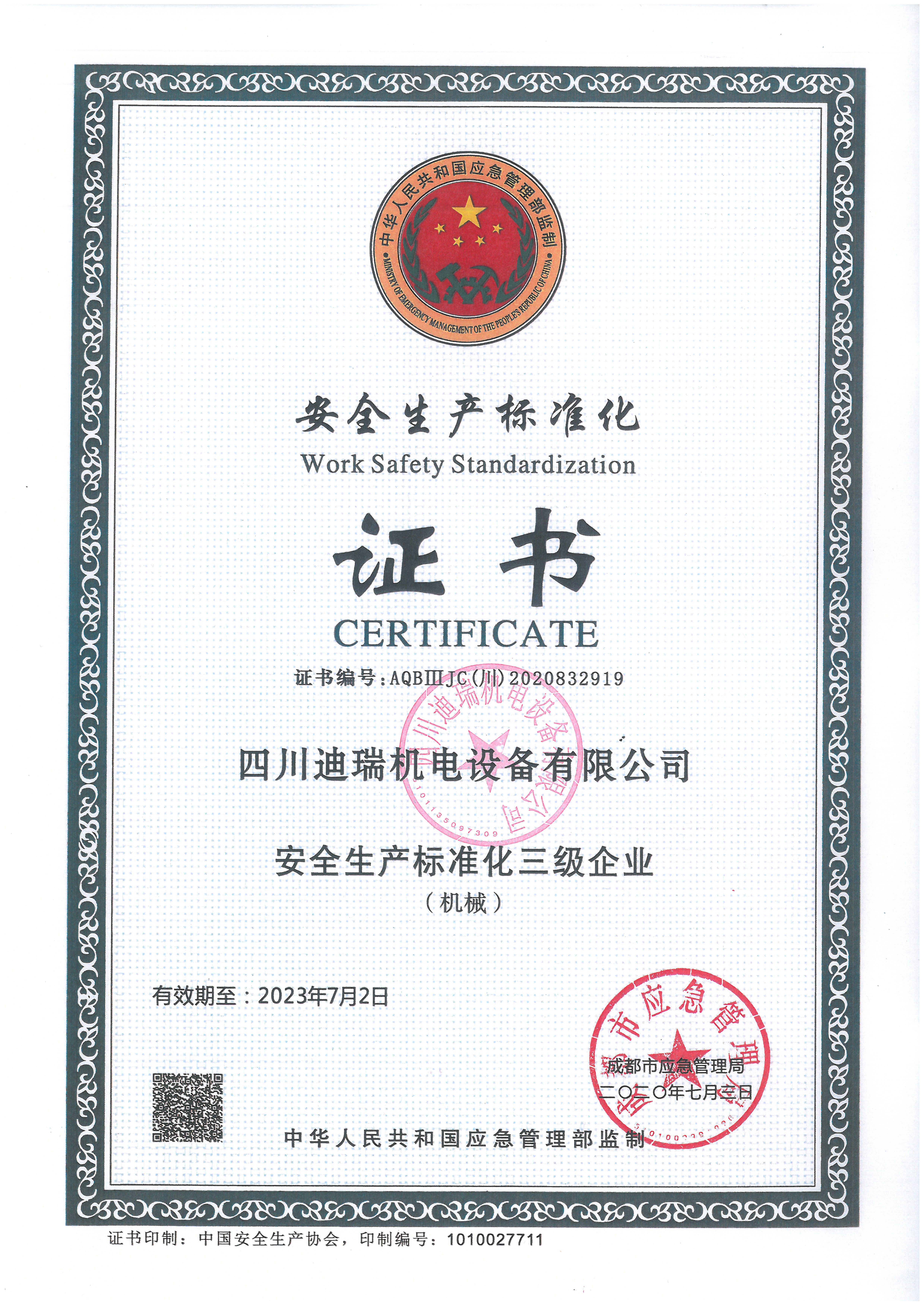 安全生產(chǎn)標(biāo)準(zhǔn)化證書(shū)