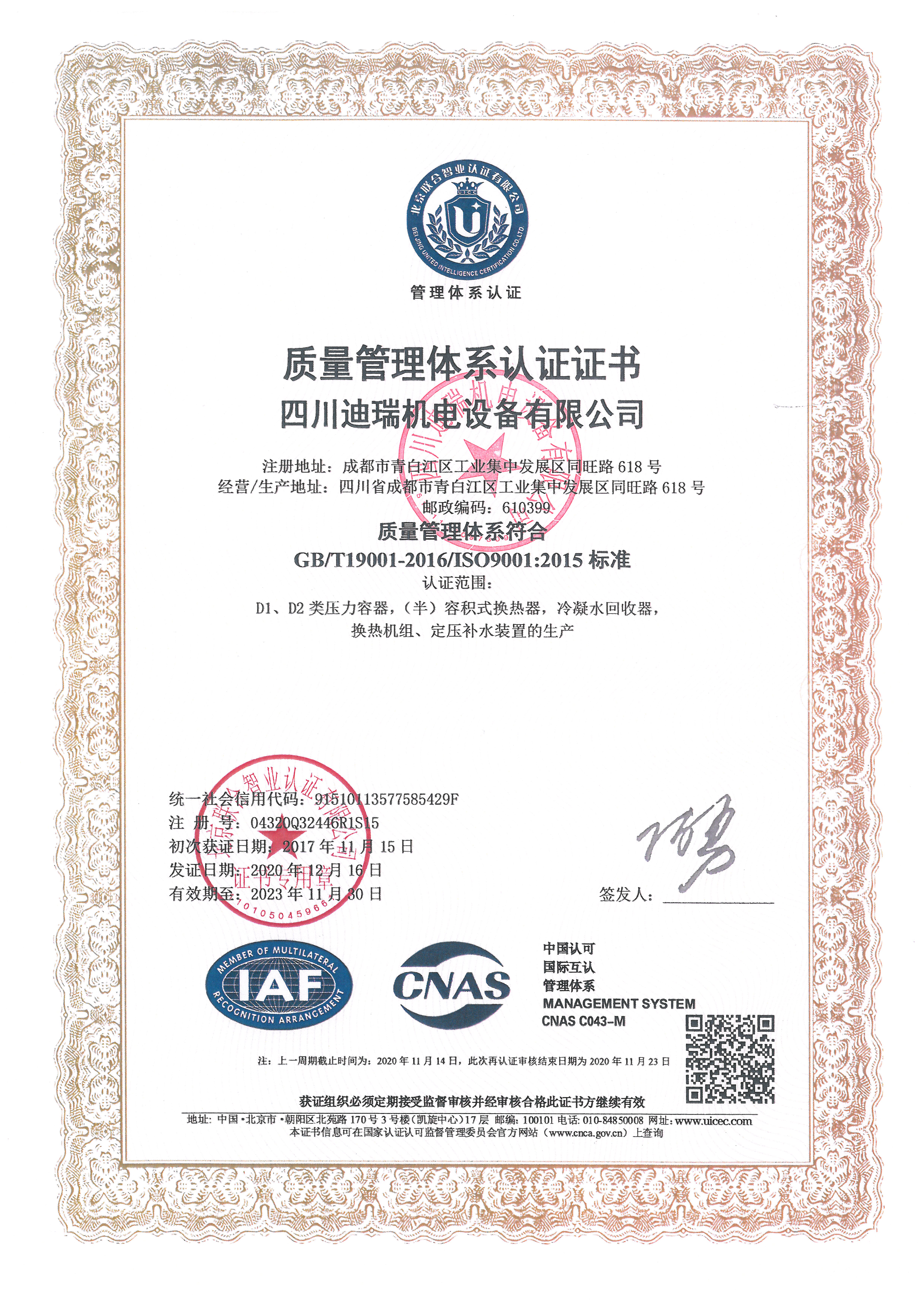 壓力容器設(shè)計(jì)/制造證書(shū)